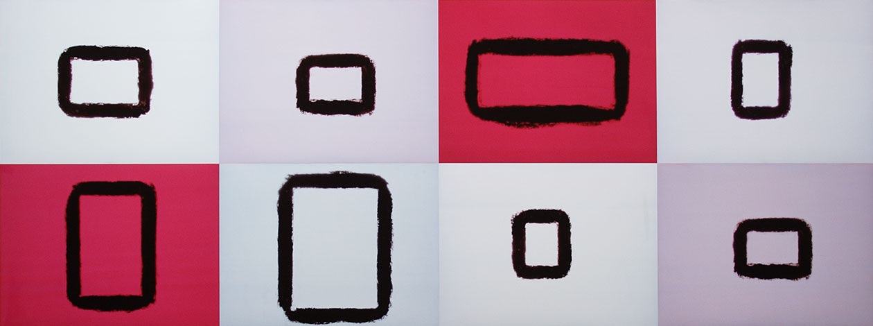 Notes: The shared frame in these prints is contact printed from a stencil. The inner images are photograms from large format books.