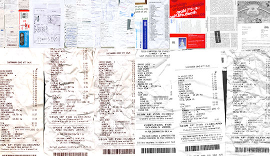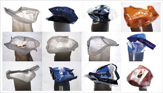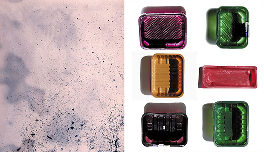 Notes: A collection of photographs and contact prints of subjects all viewed from directly above\below. The camera is focused on the base of containers to record traces of food or drink. These pictures are complemented by contact prints from waste water.